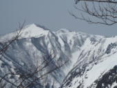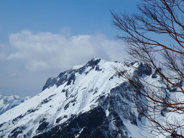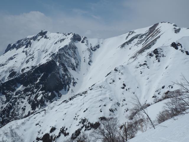 西黒尾根からの登山者に聞けば、穏やかであったと。そんな西黒尾根越しに左から白毛門、笠ヶ岳、朝日岳。再度、仰ぎ見る大障子ノ頭は岩山の荒々しさを誇っているようでした。最後の台形の山は吾妻耶山です。