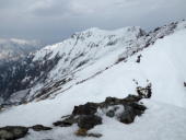 肩ノ小屋もからトマノ耳は10分。風が出始め天気の変わり目を予感。まだ東部主脈の一ノ蔵岳、茂倉岳はしっかり望むことができました。
