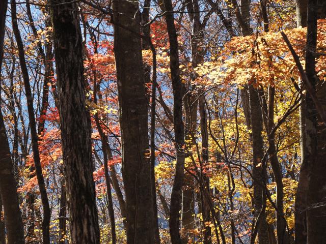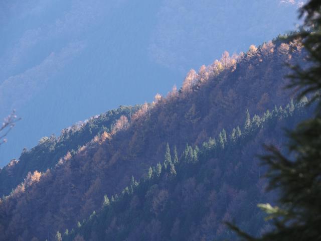 11月の先日、奥多摩湖峰谷の集落を抜け鷹ノ巣山に登り石尾根の紅葉を見ながら歩きました。稜線の多くの木は葉を落とし冬枯れの山に変身し始め、カラマツの少し赤みの入った黄色の葉とスギやヒノキの植樹帯がグラデーションを呈していました。遠くに見える南アルプスの山々も雪を被り小屋仕舞いの便りが届き始めています。
