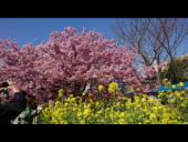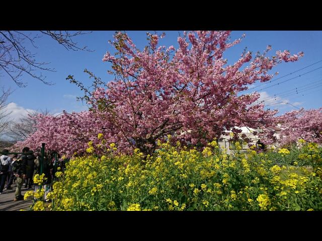 第30回河津桜まつり…暖かい冬だったので、満開を少し過ぎた感じでしたが、桜のピンクと菜の花の黄色のコントラスが見事でした。