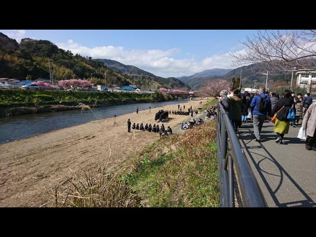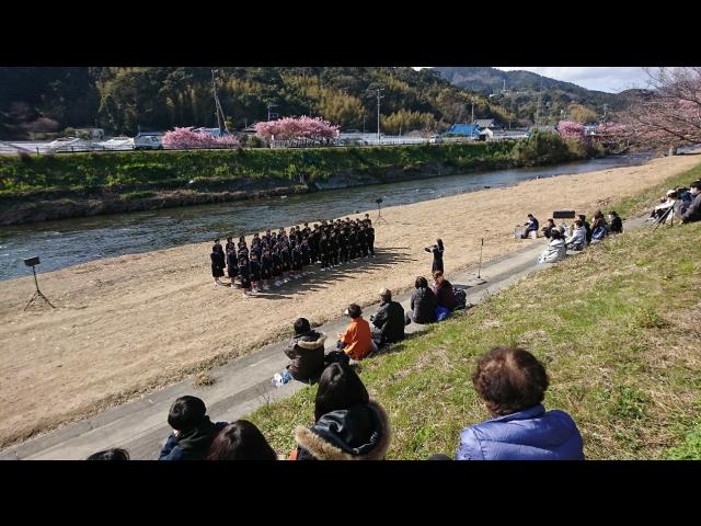 河津中学校の生徒…桜まつりの会場の河原で、3年生がクラスごとの合唱や全員合唱を披露していました。