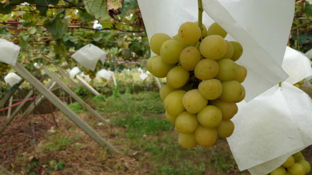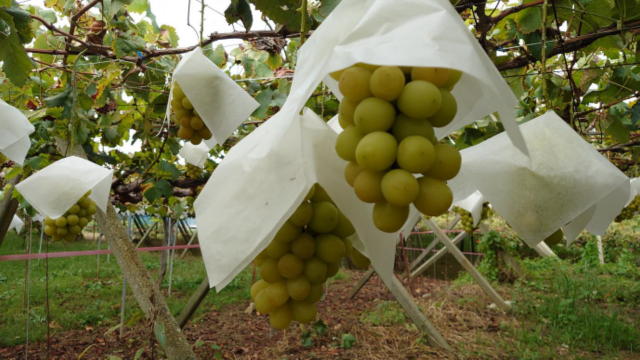 @ブドウ園で高級ぶどうシャインマスカット狩りをしました。