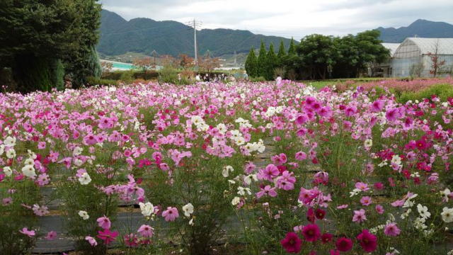 Cハーブ庭園でコスモスと赤そばの花を見学しました。